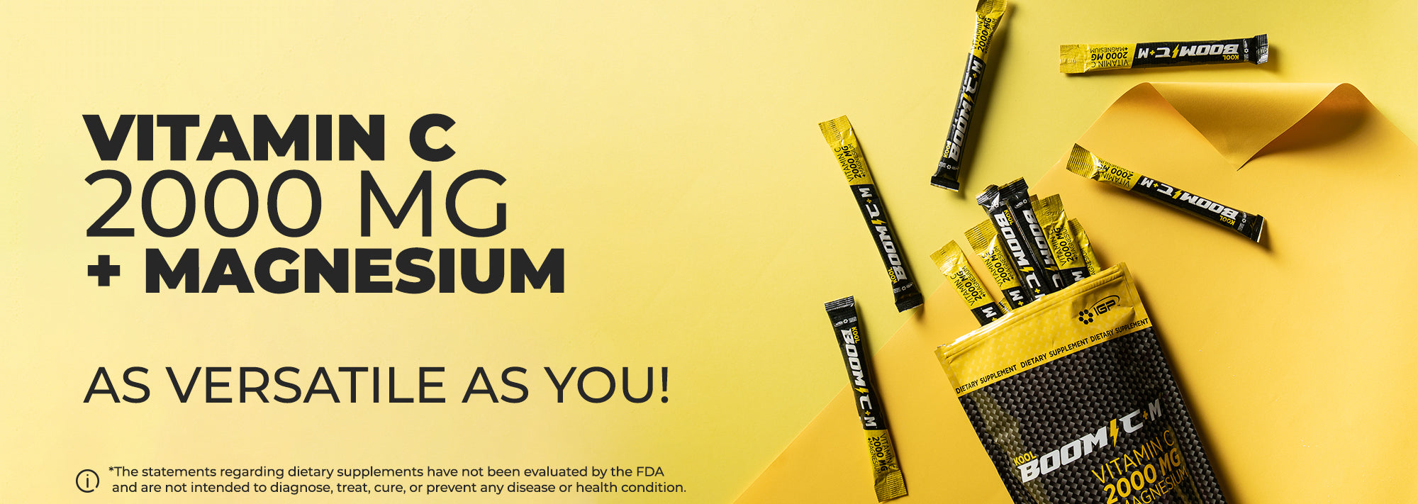 Kool Boom C + M - Vitamin C 2,000 Mg + Magnesium - 30 Stick Packets (.25 Oz - 7g)