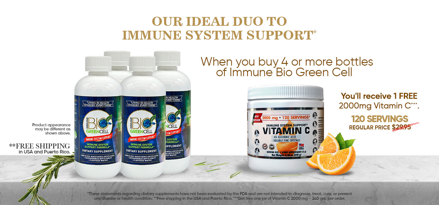 Immune Bio Green Cell - Immune System Support* - 2 Bottles Included - 2 Ml Per Serving